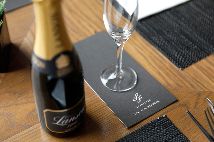 レストランご利用時にビジネスプラン(コーヒー&紅茶のフリーフロー)、またはウェルカムドリンクサービスをご利用いただけます。ご予約はスターフライヤー公式アプリに届くクーポンの「ご利用方法」から専用サイトへ。