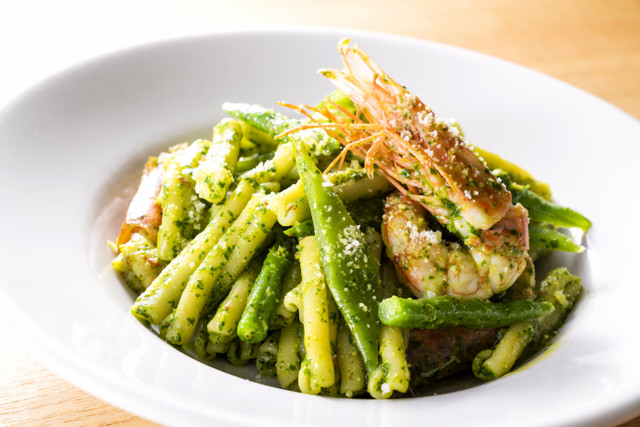 旬の野菜・食材を使ったパスタも揃います。フードメニューはこのほか、ピザやお肉類も充実。