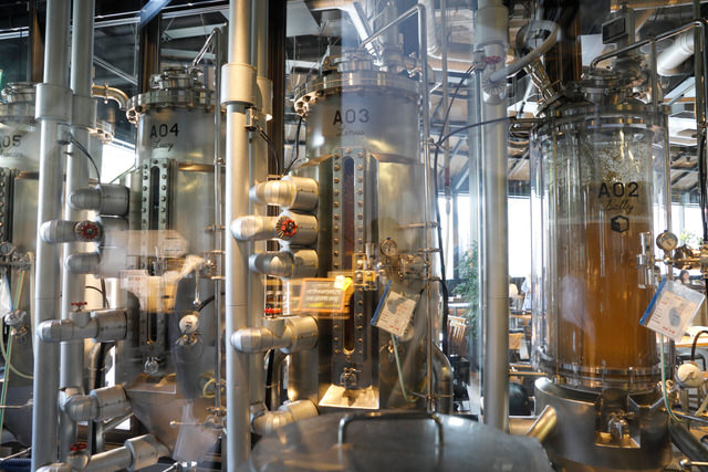 ガラス越しにビール醸造の様子も覗くことができて、ビール好きにはたまらない光景。