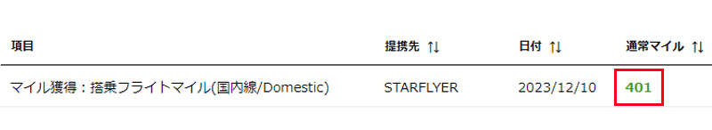 ・搭乗ボーナスマイル積算確認
