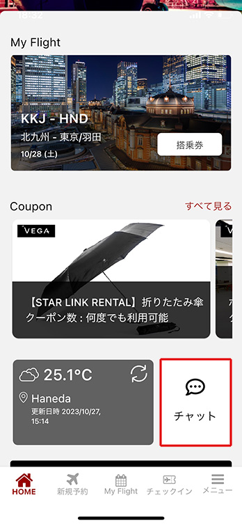 VEGA会員様が羽田-北九州線のそら旅21にご搭乗の場合