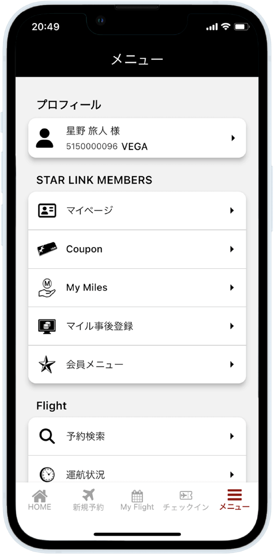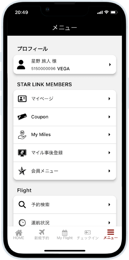 My FlightをはじめとしたSTAR LINK会員様向けの機能をご利用いただくには、会員ログインが必要です。