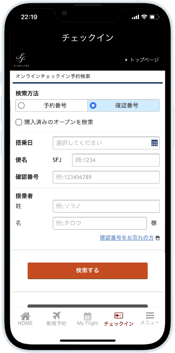 オンラインチェックインまで