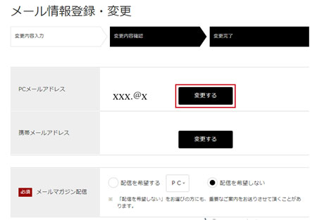 PCメールアドレス欄にご登録済のメールアドレスが無効となっている、または、携帯メールアドレスをご利用中の場合は、変更手続きが必要です。
