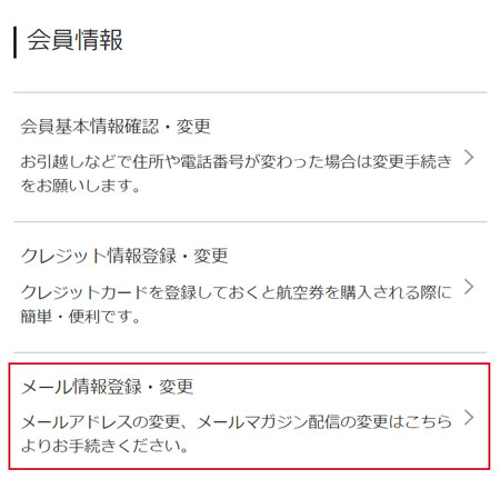 会員情報にメールアドレスが未登録の場合、または正しくご登録されていない場合は、会員ログイン後のマイル交換メニューの一部がご利用いただけませんので、必ずご確認ください。