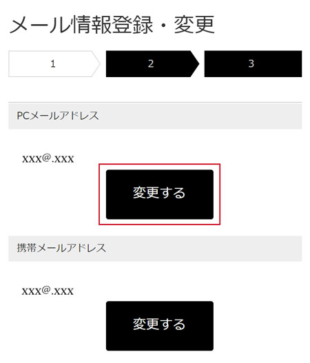 PCメールアドレスの「変更する」ボタンをクリックしてください。