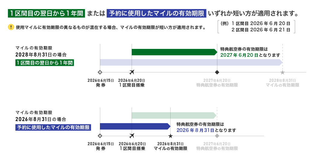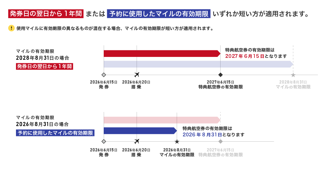 2025年5月19日~2026年5月18日搭乗分の特典航空券をお持ちで、2026年5月19日以降の搭乗日へ変更を希望される場合は、お手数ですが2026年1月末(受付開始日)以降に特典航空券専用デスクへご連絡くださいますようお願いいたします。