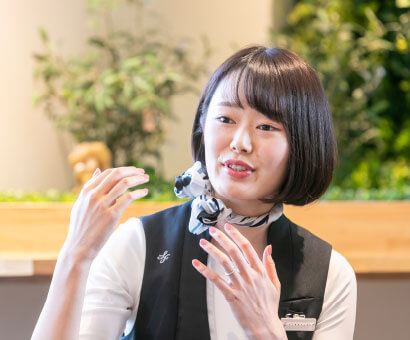 私も客室乗務員をしながら総務人事部で採用の仕事も兼務させてもらっています。スタッフアテンダントというスターフライヤー独自の制度ですね。これから先…たとえば結婚して出産して…となった時に、地上勤務の仕事も経験しておくことで自分の可能性を広げられるのではないかと思いました。自ら手を挙げれば、希望が叶う可能性があるという環境は、すごく働きやすいと感じます。