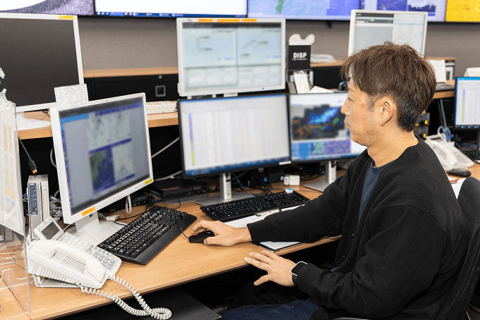 運航便全便の統括や社内外への運航方針・運航状況に関する情報発信のほか、定時性向上のための分析・調整などを行う。