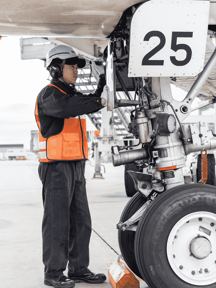 全ての地上スタッフのバトンを最後に整備士が機内スタッフへ繋ぎ、滑走路へ向かう黒い機体を見送る時は得も言われぬ思いです。表には出ない役割ですが、機体を通しお客様の旅の始まりと終わりに立ち会う航空整備士という仕事にやりがいを感じます。