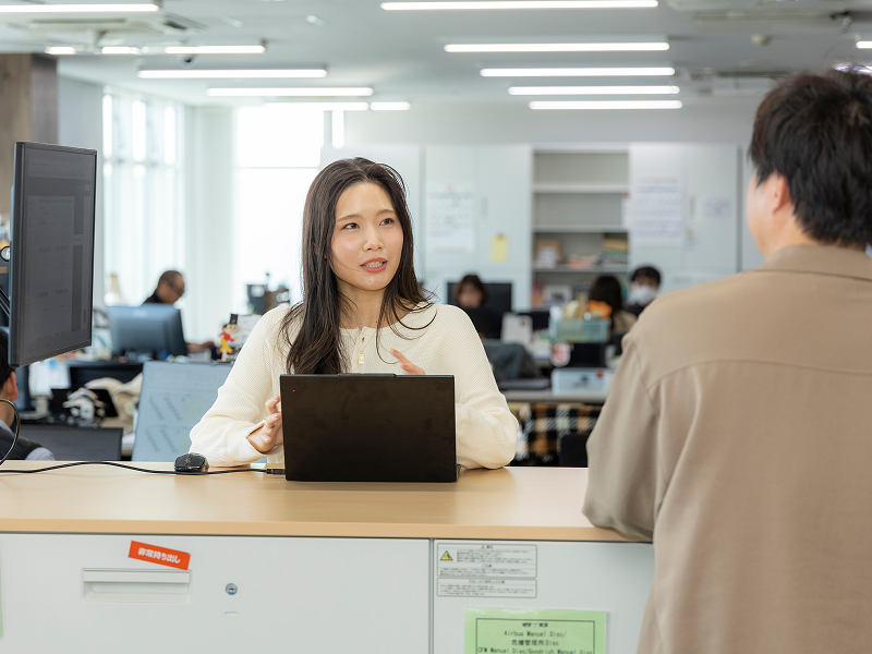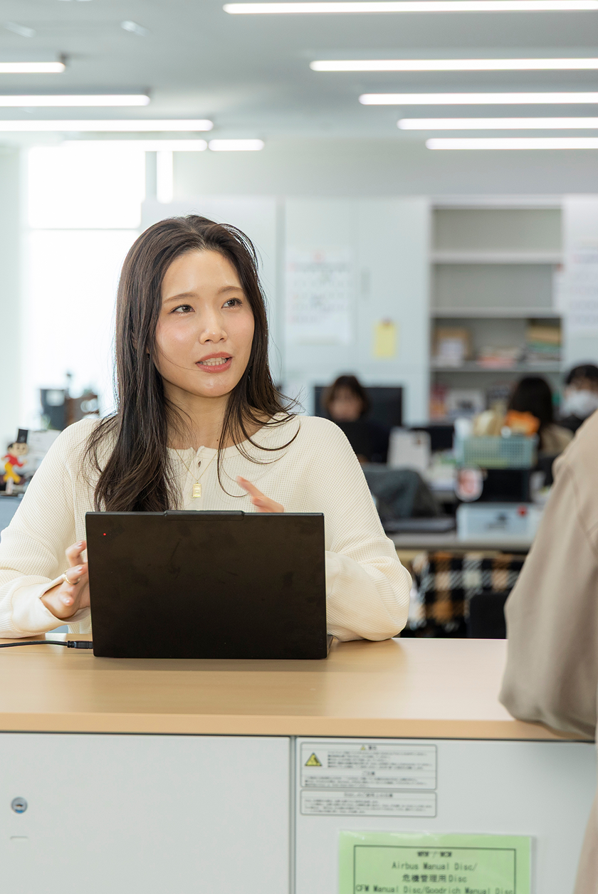 私たちの仕事は直接お客様の前に立つものではありませんが、現場部門が安全・円滑に働ける環境を整えることで、一便一便の安全なフライトにつながっている!と思い頑張っています。裏側で支えている実感が大きなやりがいになっています。