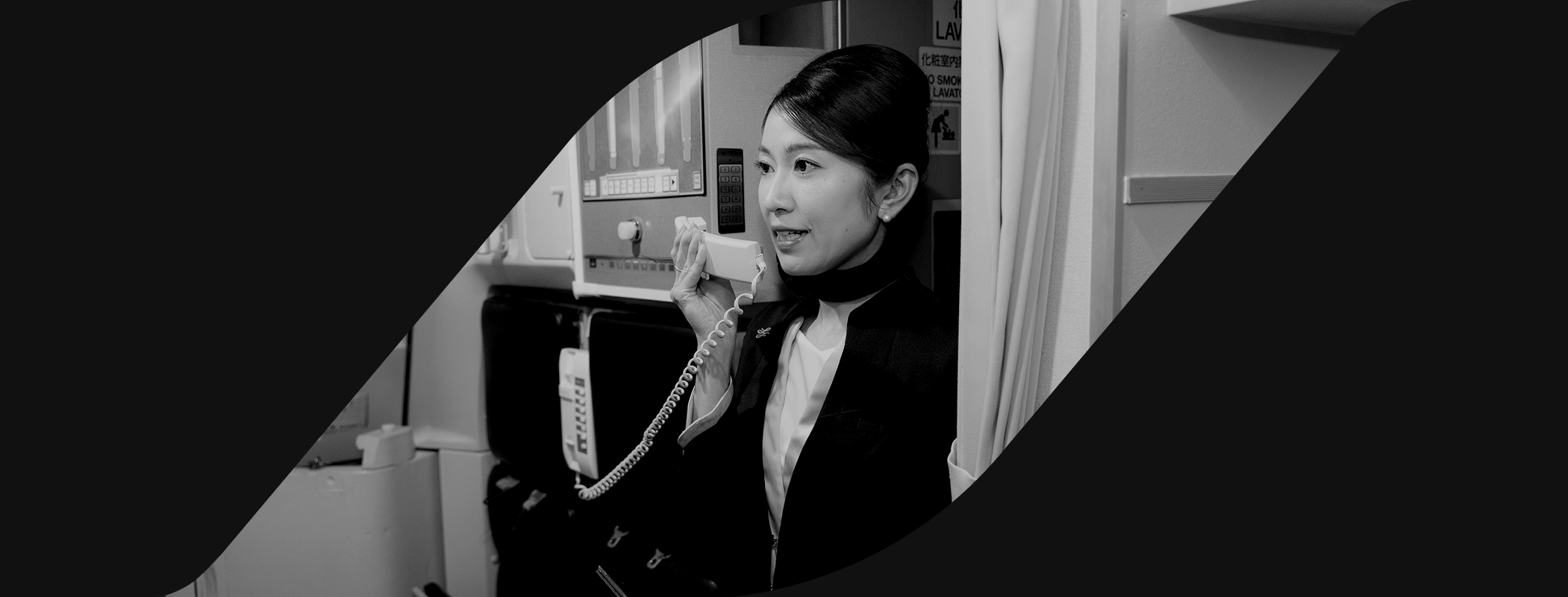 また、フライト中はお客様の安全確保を最優先に、体調不良のお客様がいらっしゃらないかなど、常に状況を確認しながら対応を行っています。 -
