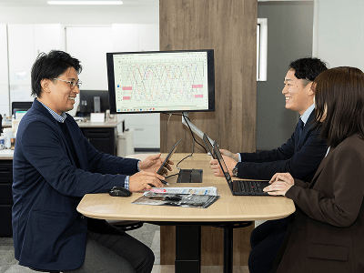 ワンフロアの中に様々な部門が集まっており、壁のないオープンな環境で、他部門との連携が取りやすい職場です。
