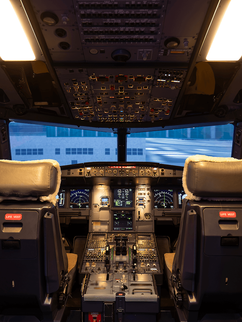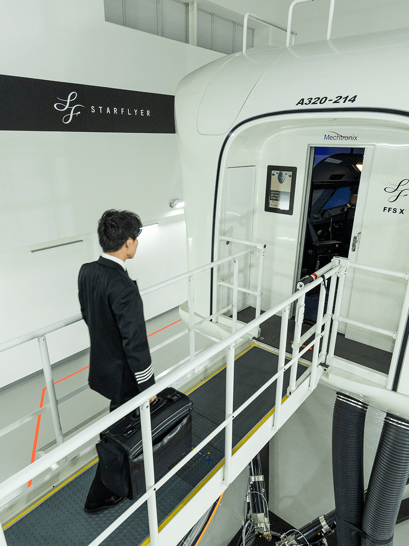 スターフライヤーが保有しているフルフライトシミュレーターは、国土交通大臣が認定する最高位の性能である“レベルD”の認定を取得しており定期訓練や昇格訓練等において、実機に代わって活用することができます。