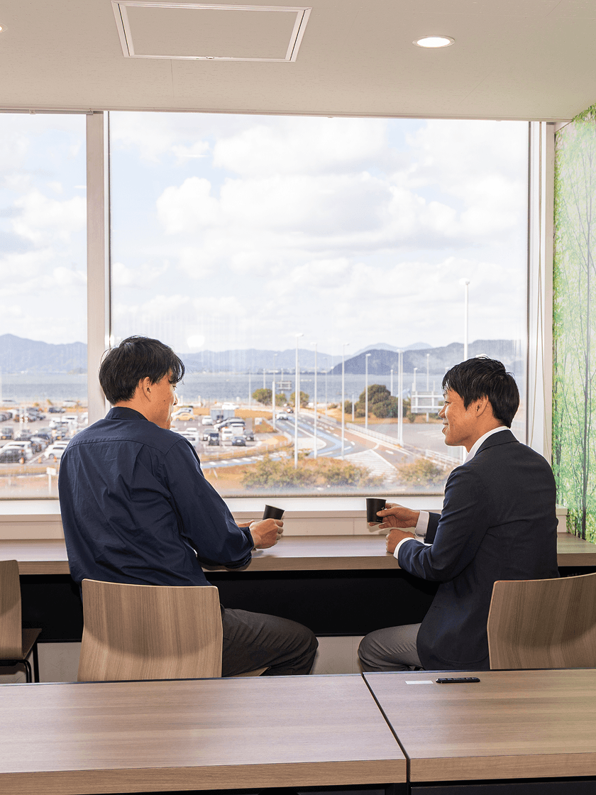 ワンフロアの中に様々な部門が集まっており、壁のないオープンな環境で、他部門との連携が取りやすい職場です。