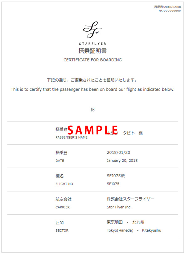 搭乗証明書データが表示されますので、こちらを印刷してください。