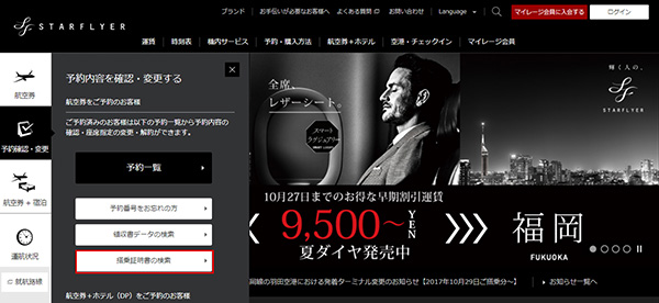 搭乗証明書検索画面にて、搭乗証明書を発行したい記録を照会してください。