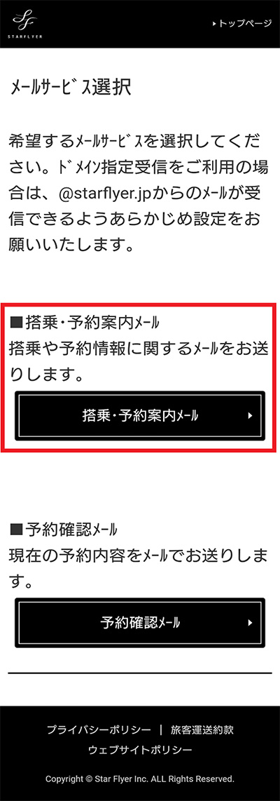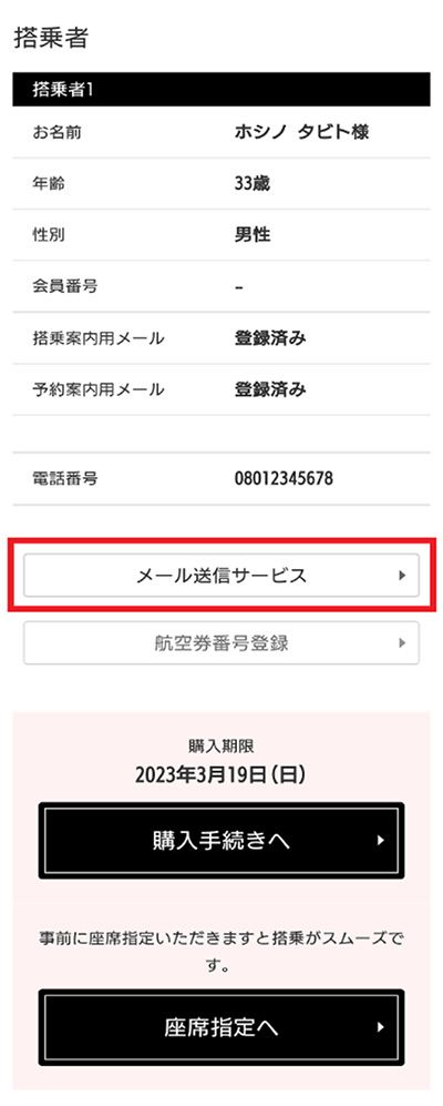 搭乗案内メール ※登録必須