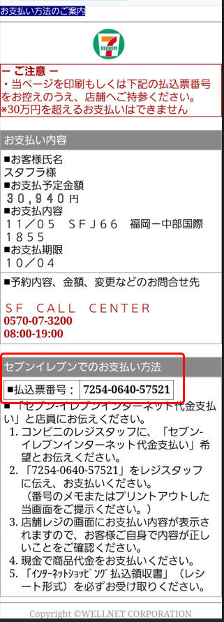 払込票番号をお控えの上セブンイレブンへご持参ください。