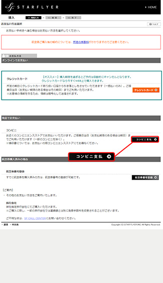 『お支払い方法選択』画面で[コンビニ]を選択します。