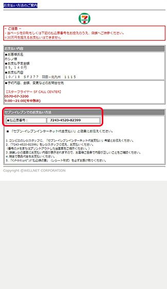 払込票番号をお控えの上セブンイレブンへご持参ください。