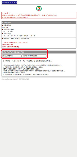 スクリーンショット等と番号が変わることがありますので、最新の払込番号でお支払いください。