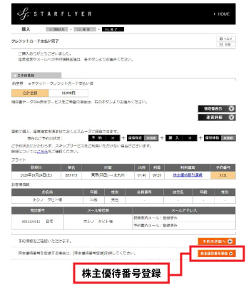 お手元に「株主優待番号ご案内書」がなくても予約・ご購入が可能です(スターフライヤー空港カウンター・旅行会社でのご購入は除く)。お手元に届き次第、「株主優待番号」および「登録用パスワード」をご登録ください。