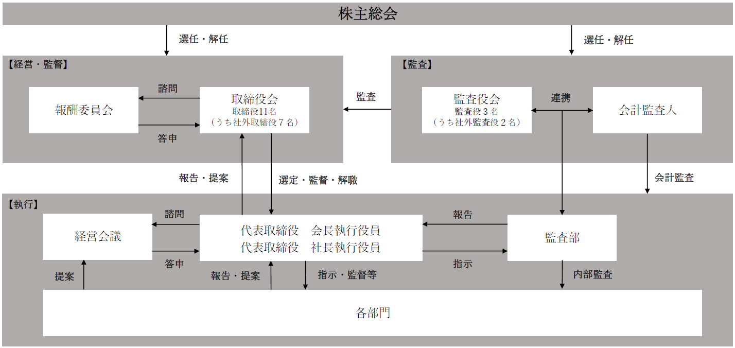 - (4)独立社外取締役が積極的に役割を担う仕組み(「報酬委員会」、「社外役員・代表取締役等との意見交換会」等)を設置し、取締役会による業務執行の監督機能を強化します。