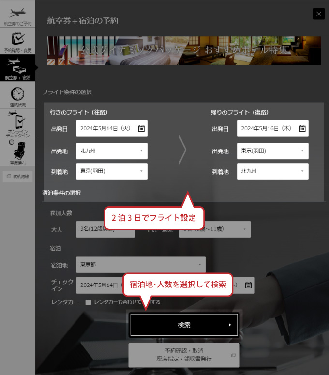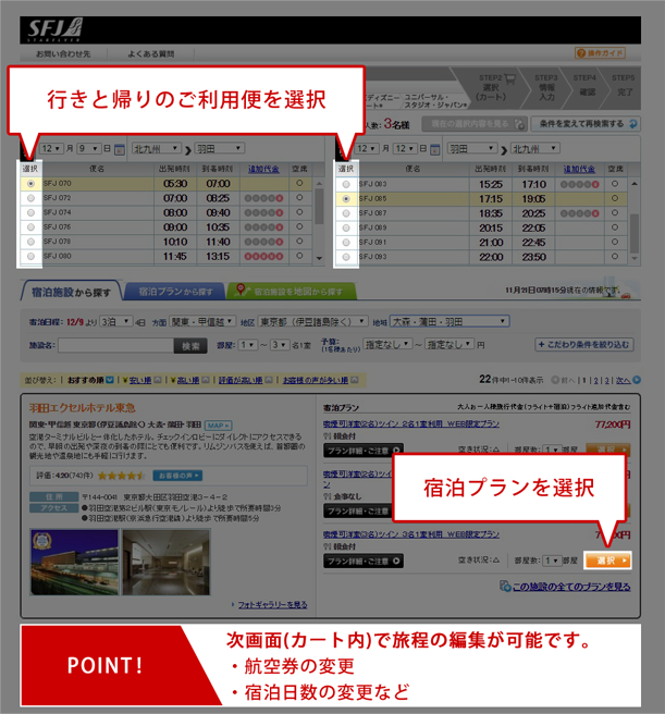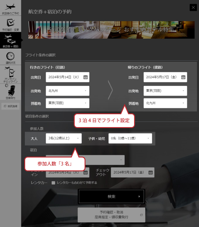 複雑な旅程を予約する際の操作方法をご説明いたします。