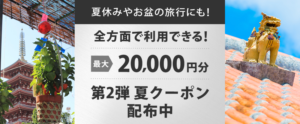 - クーポンの金額が旅行代金を上回る場合であっても、差額は返却されませんので、ご了承ください。