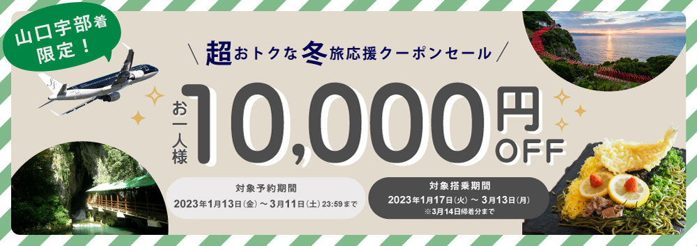 1名様あたり10,000円OFF!!「いざ、山口へクーポン」