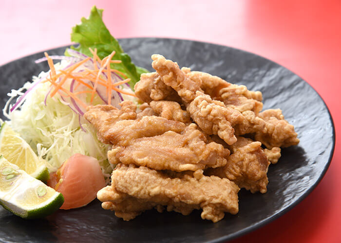 - 別府が発祥のとり天。唐揚げとは違いふんわりとした食感でポン酢をつけていただくのが特徴です。