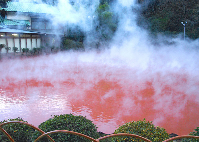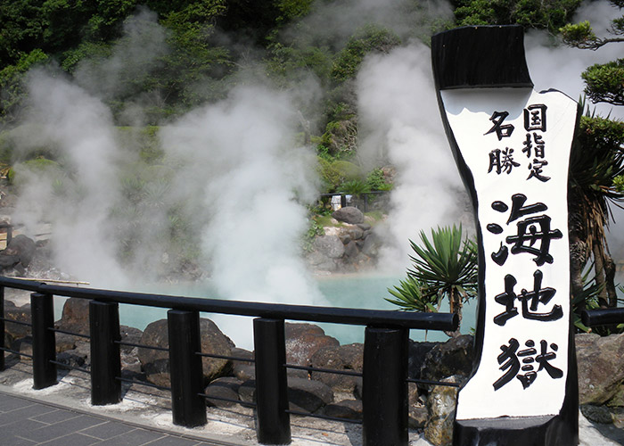 - 別府観光の定番コースである地獄めぐり。赤、青、白などの様々泉色の温泉があり、国指定の名勝に指定されている地獄もあります。