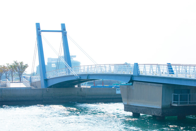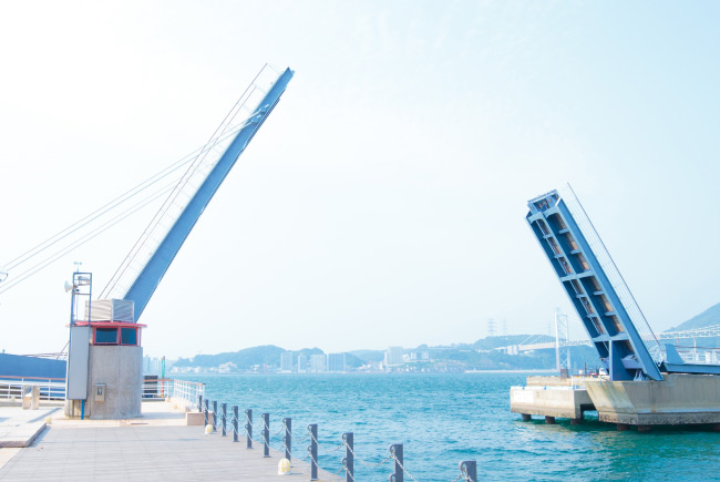 朝な夕な、港町の風景に溶け込む 日本最大級、歩行者専用の跳ね橋