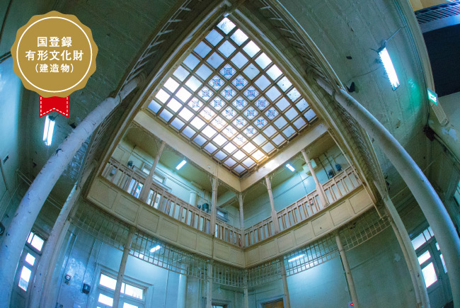 足を踏み入れると、柔らかな光が降り注ぐ、吹き抜けのステンドグラスに目を奪われます。大正2(1913)年に建設されたこの空間には、約100年以上も前に作られた回廊や吹き抜けが存在。時が止まってしまったような古い佇まいと、優美な雰囲気が素敵なビルです。近年は国の有形文化財建造物に登録されたほか、センスのいいカフェや雑貨屋などが入居。若松の話題づくりに貢献しています。
