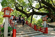 毎年正月の初詣には西日本トップクラスの参拝者数。また、御祭神の菅原道真公が学問の神様であることから、受験シーズンにも多くの人が願をかけ、年間800万人が訪れます。天正19(1591)年に再建された御本殿は安土桃山建築で、その文化気風が漂います。春先に咲く飛び梅や、初夏のショウブ、秋の紅葉と季節のごと自然も豊か。境内には、なでると頭がよくなるという神牛の像が11体。ぜひ探してみてください。