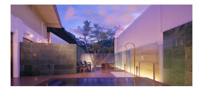 大正12年創業の老舗です。創業時からの伝統、お抹茶でお迎えします。壮大な自然につつまれた洋風造りの自慢の露天風呂、信楽焼の陶器風呂は源泉掛け流し。