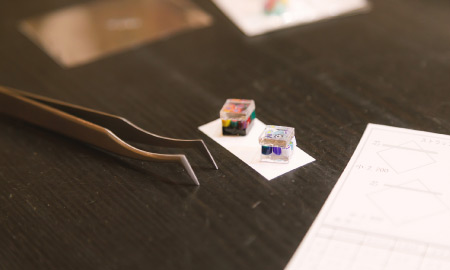 ヨーロッパの素材を使ったアクセサリーの販売と、イタリアのヴェネチアンガラスやビーズを使った製作体験ができるお店。今回スタッフが体験したのは「イヤリング・ピアス(中)」2,600円。繊細かつ美しいヴェネチアンガラスをピンセットで配置し、自分好みにデザイン。悩みながらの配色作業は楽しく、思わず没頭すること間違いなし!作品は後日焼成、冷却を経て、指定の場所に郵送(有料)されます。