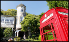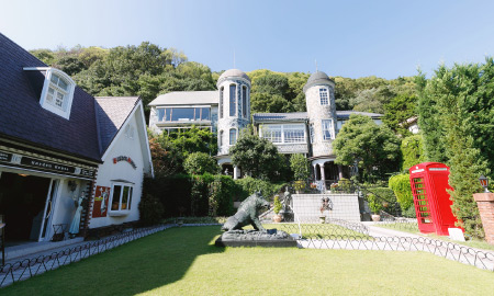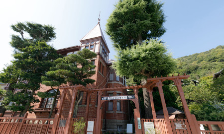 国指定登録有形文化財。神戸で最初に公開された異人館・うろこの家は外国人向けの高級借家として、旧居留地に建てられ、明治38年頃現在の場所に移築されました。六甲山麓の緑に映えるうろこのような外壁は、約3,000枚の天然スレート(粘板岩)で覆ったもの。庭園に鎮座するイノシシのポルチェリーノの鼻を撫でると幸運に恵まれるという言い伝えも。敷地内には「小さな美術館」が併設され、様々なアートに触れることができます。