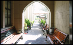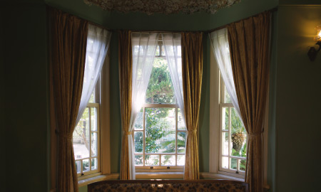 国指定重要文化財。明治36(1903)年、アメリカ総領事ハンター・シャープ氏の邸宅として建築されました。木造2階建て、下見板張りの異人館で、2つの異なる「ベイ・ウインドー」(張り出し窓)をはじめ、アラベスク風模様の階段、重厚なマントルピースなど、贅沢な意匠が施されています。2階のベランダから一望できる、神戸の街並みは必見。隣の「風見鶏の館」とセットで楽しめる2館券(650円)がお得です。