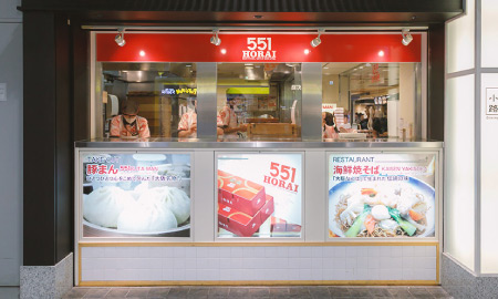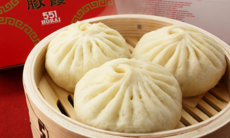 「551蓬莱」は必ず立ち寄りたいお店の1つ。「関西空港店」には、本格中華料理が手軽に楽しめるレストランと、テイクアウトできる販売コーナーがあります。看板商品の「豚まん」(4個入り840円)や豚まんに次ぐ人気の「焼売」(10個750円)は、ぜひ味わっておきたいところ。特に「豚まん」は一つひとつ愛情をこめて手作りされており、ボリュームも満点!全店舗で1日平均約15万個も売れるという大ヒット商品です。