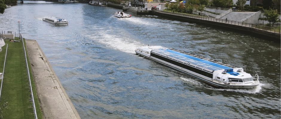大阪市内を流れる大川(旧淀川)の水面を走る「アクアライナー」。大阪城や中之島をめぐる周遊コースは、都会の中に息づく自然や、近代遺産建築など、今までのイメージを覆す大阪の一面を教えてくれる、驚きに満ちた55分です。また、クルーズ1日乗り放題券と、市内58か所の施設や店で使えるバルチケット、地下鉄・市バスの1日乗車券がセットになった「水都大阪満喫チケット」は、そのお得さ、内容の充実度で大人気です。