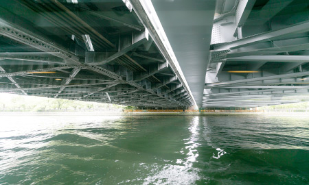 「新鴨野橋」付近から望む大阪城は絶好の撮影ポイント。「中之島」エリアには高層ビル群が立ち並び、北浜エリアの両岸には、大阪市中央公会堂や造幣局などの近代建築が存在感を放っています。時折、護岸にある飲食店のテラス席から手を振ってくれる人達とのふれ合いもあり、思わぬ歓迎に気分がホッと和みます。橋の下ギリギリを通過するドキドキ感と、天井窓から見える大阪の空も、旅の素敵な思い出になりそうです。