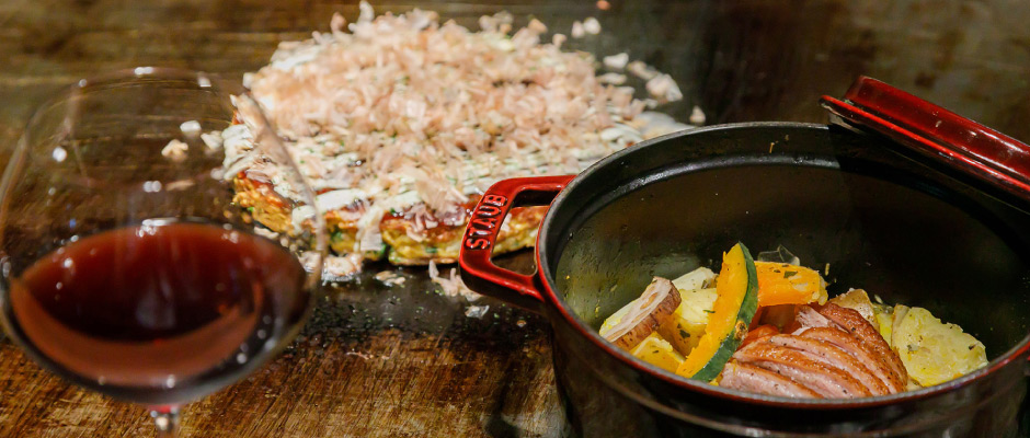 自然派ワインに合うお好み焼きや絶品料理に、舌鼓を打つ夜