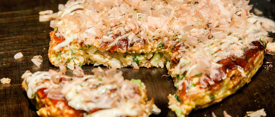 豊富な品揃えの自然派ワイン(グラス1,200円~)と、厳選食材を使ったコース料理(要予約・4,200円)、創業1965年の味を受け継ぐお好み焼き・焼きそば(各880円~)が味わえるお店。シェフである中川善夫さんが作る野菜中心のコース料理は前菜やストーブ料理など全4品。ふんわり軽いお好み焼きはじっくり焼きあげるため、キャベツの甘みが格別!尼崎のワンダフルソース オリジナルブレンドで仕上げれば、口福の1枚が出来上がります。