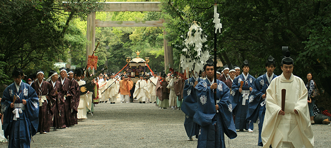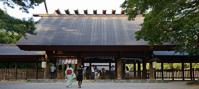 創祀は第12代景行天皇の時代(113年)にまでさかのぼり、日本武尊(やまとたける)のお妃である宮簀(みやす)媛(ひめの)命(みこと)が、日本武尊のご遺徳を偲び、熱田の地を選び定めて草薙神剣をお祀りしたことにはじまります。