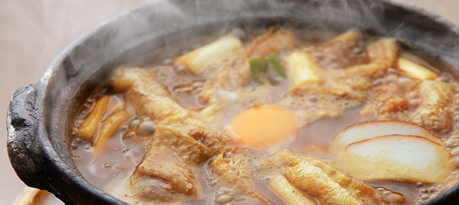 愛知県の食文化として見逃せないのが「味噌風味」。じっくり煮込んだ味噌おでん、甘辛さで食が進む味噌カツ、酒の肴にモツの味噌煮込み…。しかもその味噌が、大豆のうまみをしっかり凝縮した「赤味噌」です。