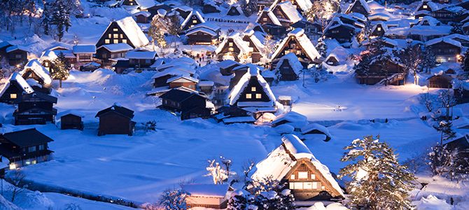 誰もが一度は目にしたことがあるでしょう。世界遺産に選ばれた白川郷「合掌造り集落」の風景写真。山々に囲まれた荻町地区で、まるで人の手がやわらかに合わさって祈りをささげるような合掌造りの家々は、外国の観光客にも心温もる日本の原風景を連想させるようです。