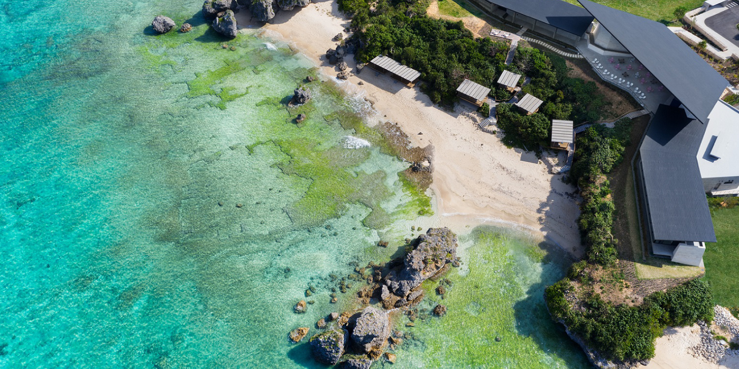 沖縄の史跡を思わせる「グスクウォール」の向こう、海を眺めて過ごすために、自然海岸に沿ってに建っています。全室オーシャンフロントの客室、一年中楽しめる海に開かれたプール、アクティビティの拠点となる道場など、どこからも海を近くに感じながら、気ままに暮らす滞在をお楽しみください。