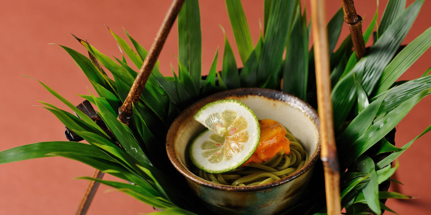 海の幸・山の幸に恵まれた大分県。瀬戸内海と太平洋の黒潮が合流する豊後水道に育まれた魚介は格別。夕食では大分の特産品かぼすを取り入れ、竹細工をあしらった器で会席料理をご用意します。朝食は別府温泉の名物料理である、「地獄蒸し」をアレンジした和食膳をお楽しみください。